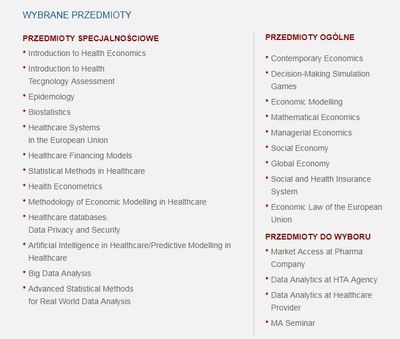 Health Economics and Big Data Analytics to specjalność na kierunku ekonomia.